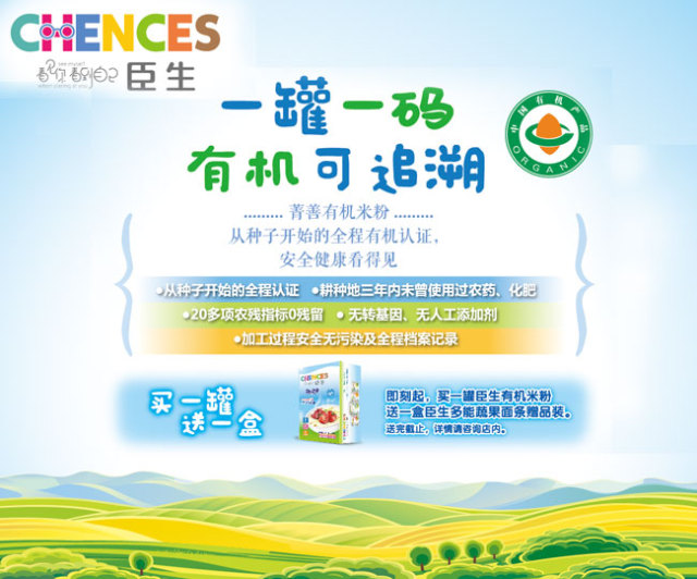 宝宝的口粮是妈妈们的头等重任,妈妈们会有各种的纠结,那么什么样的才是真正安全靠谱的呢?堪称头等口粮呢?不上火不便秘就够了吗? 17c一起草 即将上市的菁善有机米粉17c一起草从种子开始的全程认证。种子或种苗未经基因工程技术改造过,三年内未曾使用过农药、化肥等违禁物质的生产基地,具有合法的有机食品认证机构的认证证书,这些都是我们给宝宝们安全可靠口粮的保证。