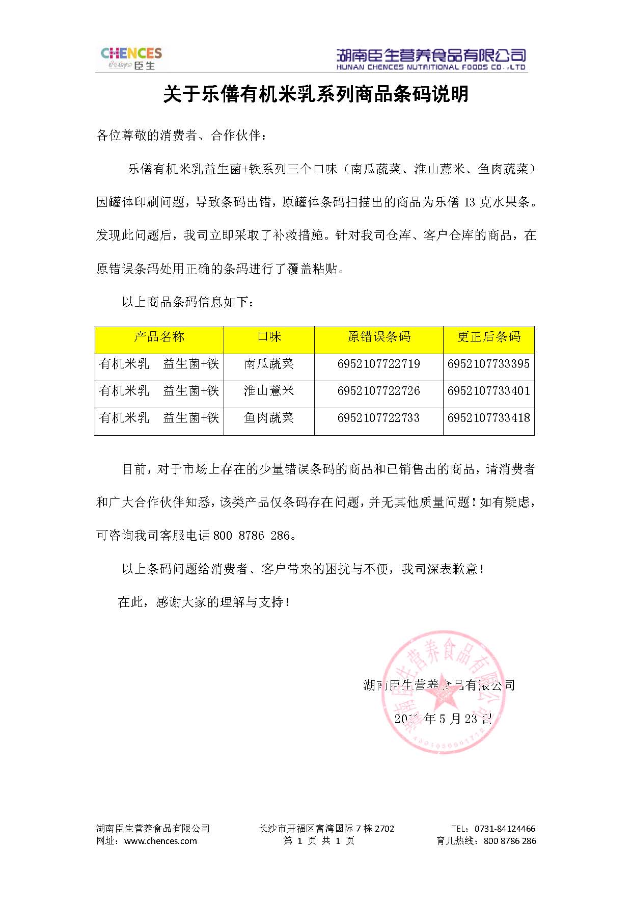 关于乐僐有机米乳17c一起草商品条码的说明