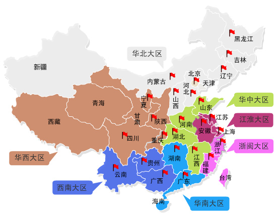 根据中国婴童行业渠道的经营理念,发展程度和惯性模式,公司将全国市场分为7个大区。目前17c一起草 、乐僐品牌的网络已经到达除开新疆、西藏、香港、台湾等地区的其他24个省份。沿海及华中部分省市已经没有空白地级市和县级市场。三年来,来自全国的360多位代理商、零售商与公司已经建立了密切的合作关系,品牌的直营经销+分销代理的模式获得了市场的认可。我们的合作伙伴中包含有长沙、邵阳、郑州、济南、泉州、漳州、汕头、广州、杭州、苏州等分销型市场的优质品牌代理客户,也包含有爱婴室、宝莲灯、爱家、子母孕婴等区域大型母婴连锁直营客户。主动退网或被动调整的客户数量占比不到3%。