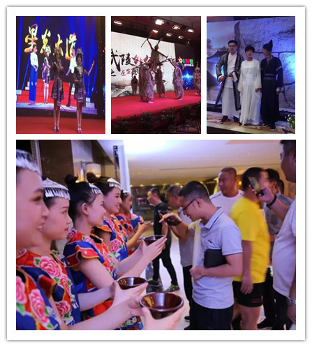 晚宴上,充满湘西特色节目精彩纷呈,湘西阿妹拦门酒、茅古斯、试苗装、猜新娘和摆手舞,苏木绰绰将晚会推向高潮。